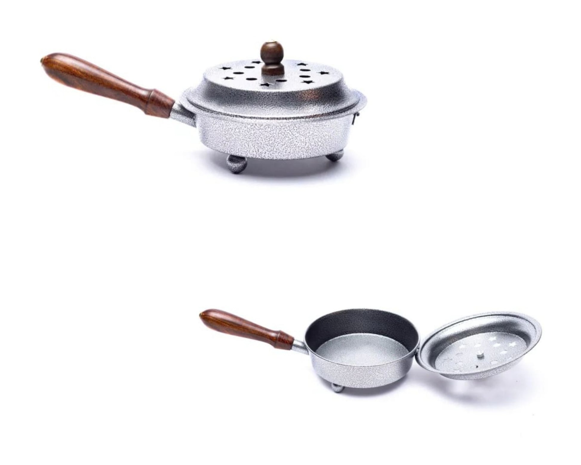 Eine Räucherpfanne ist ein spirituelles Werkzeug zur Reinigung, Segnung und Energieausrichtung. Durch das Verbrennen von Räuchern (Kräuter, Harze) wird Rauch erzeugt, der Körper, Raum und Geist klären soll. Sie dient der Meditation, Dankbarkeit, Schutzrituale und dem Würdigen von Übergängen. Die Räucherpfanne ist aus Eisen und hat einen Holzgriff.
